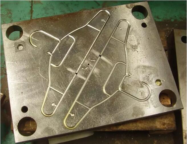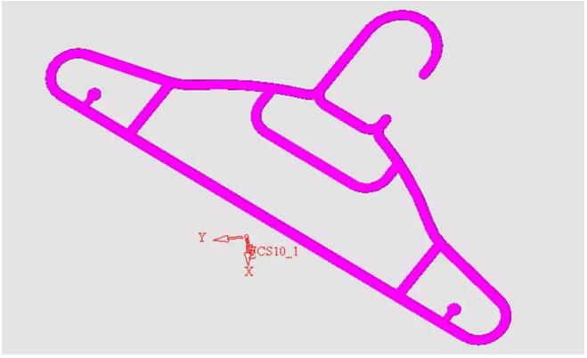 有的產(chǎn)品雖然在模具里占的范圍很大,但是由于產(chǎn)品有很多空擋,實(shí)際投影面積和鎖模力比較小,重量也比較小,但是模具的體積大,所用的注塑機(jī)也大,生產(chǎn)時(shí)電能的利用率很低。我們平時(shí)用的塑料衣架便是最常見(jiàn)的例子。下圖是我們?cè)诔欣镔I(mǎi)到的最普通的衣塑料架。