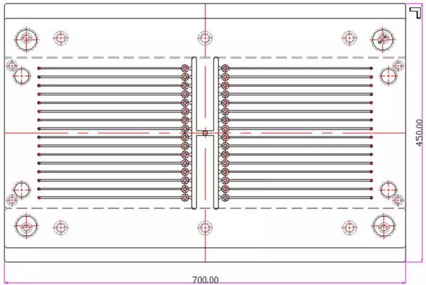 多層注塑模具基本上分二大類(lèi),第一類(lèi)是平面排列的,第二類(lèi)是圓周排列的。平面排列的多層注塑模具,分為4層或者更多層的排列。我們?nèi)≈虚g的任何一層來(lái)分析: