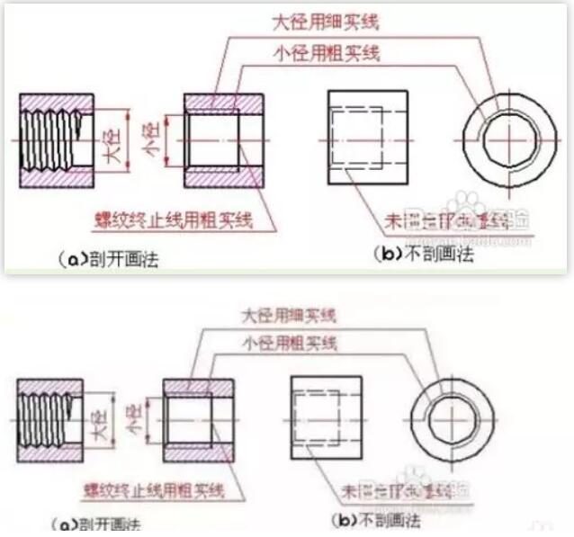 螺紋種類有很多種,畫法也有不少,新手朋友有些混淆,下面對螺紋畫法做一個總結。