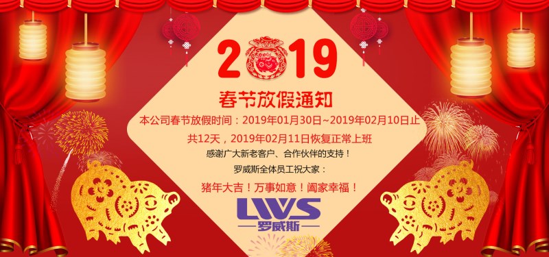 根據國家法定節假日規定并結合我司實際生產情況,2019年春節放假作出以下安排:自2019年01月30日~2019年02月10日止,共12天。(2月11日正式上班)